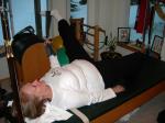The Pelvic Clock (also used in the Feldenkrais method) is a perfect beginning exercise since it illustrates how to initiate movement from the core, but can also be enjoyed by advanced students who continue to garner self-awareness from its repeated practice. To perform the Pelvic Clock exercise, have your client lie supine with knees bent and feet on the floor (or you can prop the client’s legs on the Reformer Short Box).